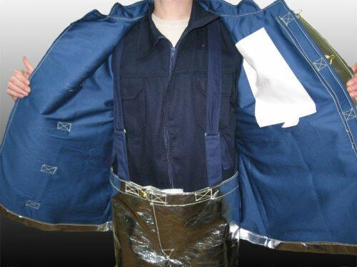 Ubranie przeznaczone jest do ochrony pracownika przed czynnikami gorącymi takimi jak płomień, rozpryski płynnego metalu, rozpryski żużla, intensywne promieniowanie cieplne.