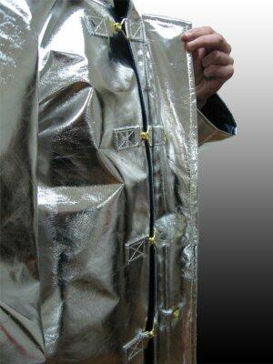 bluza zapinana jest na szybko rozłączne zapinki chronione plisą przed adhezją płynnego metalu;
